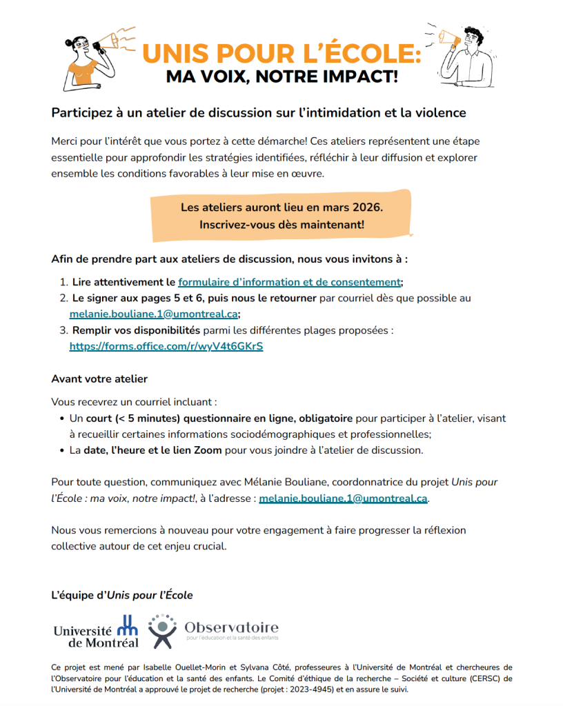 -PERSONNEL SCOLAIRE ET PARENTS-Unis pour l’école: ma voix mon impact!